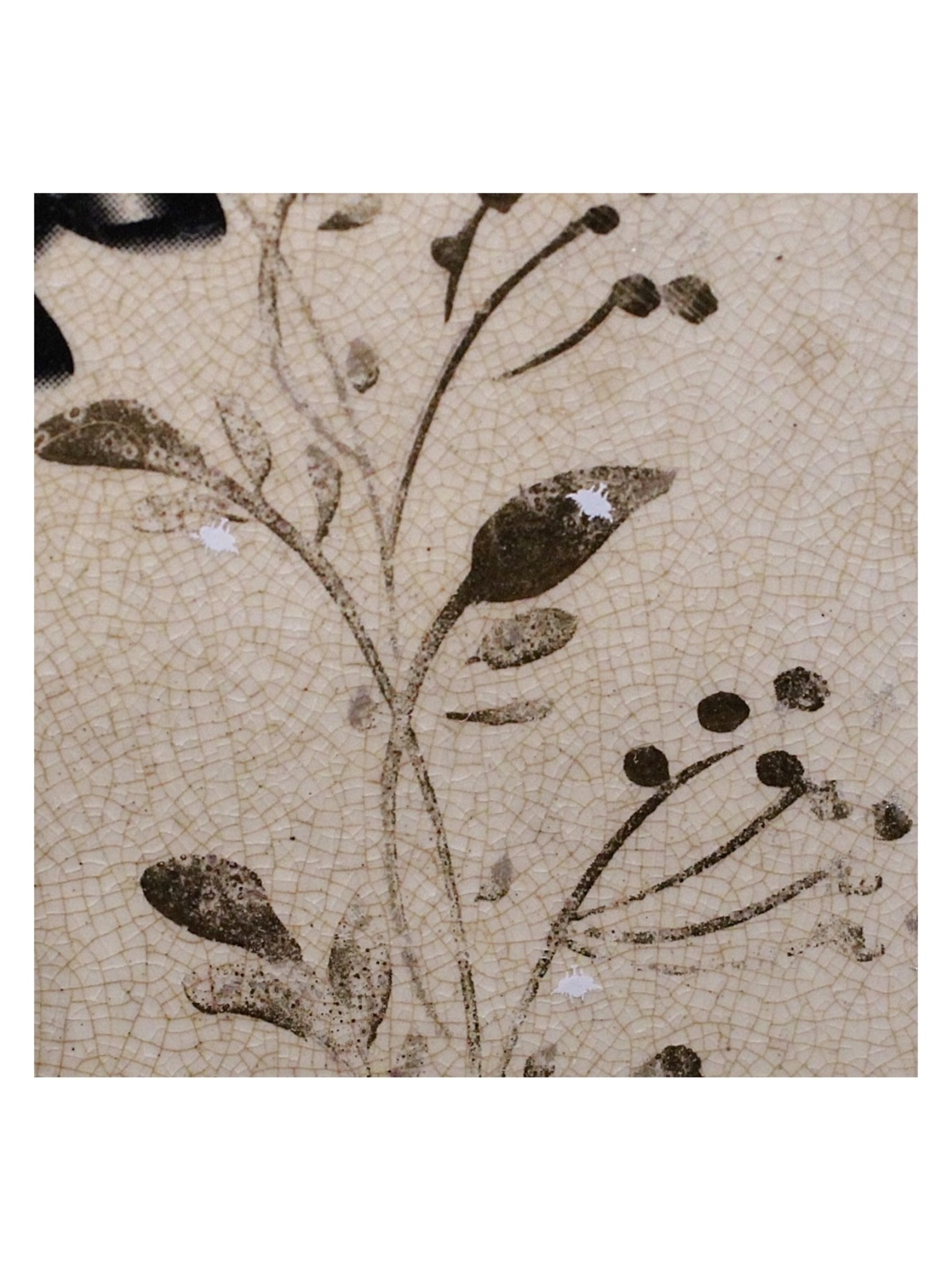 かなり古い物特有の貫入(釉薬の表面に現れる細かいひび状の模様)に水分が染み込み色が変化した感じが素敵さを増長させて地がベージュなのも相まって独特の雰囲気を醸し出しています。