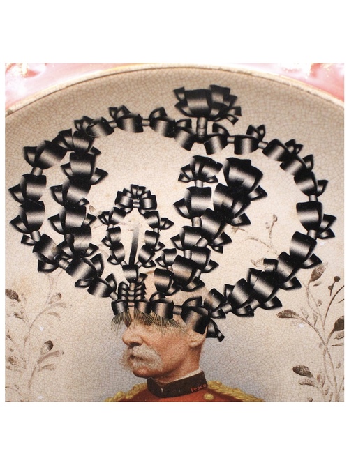 元々ある絵柄にオリジナルのモチーフをコラージュ転写してmodernにアップデートさせる一点物のART PLATE