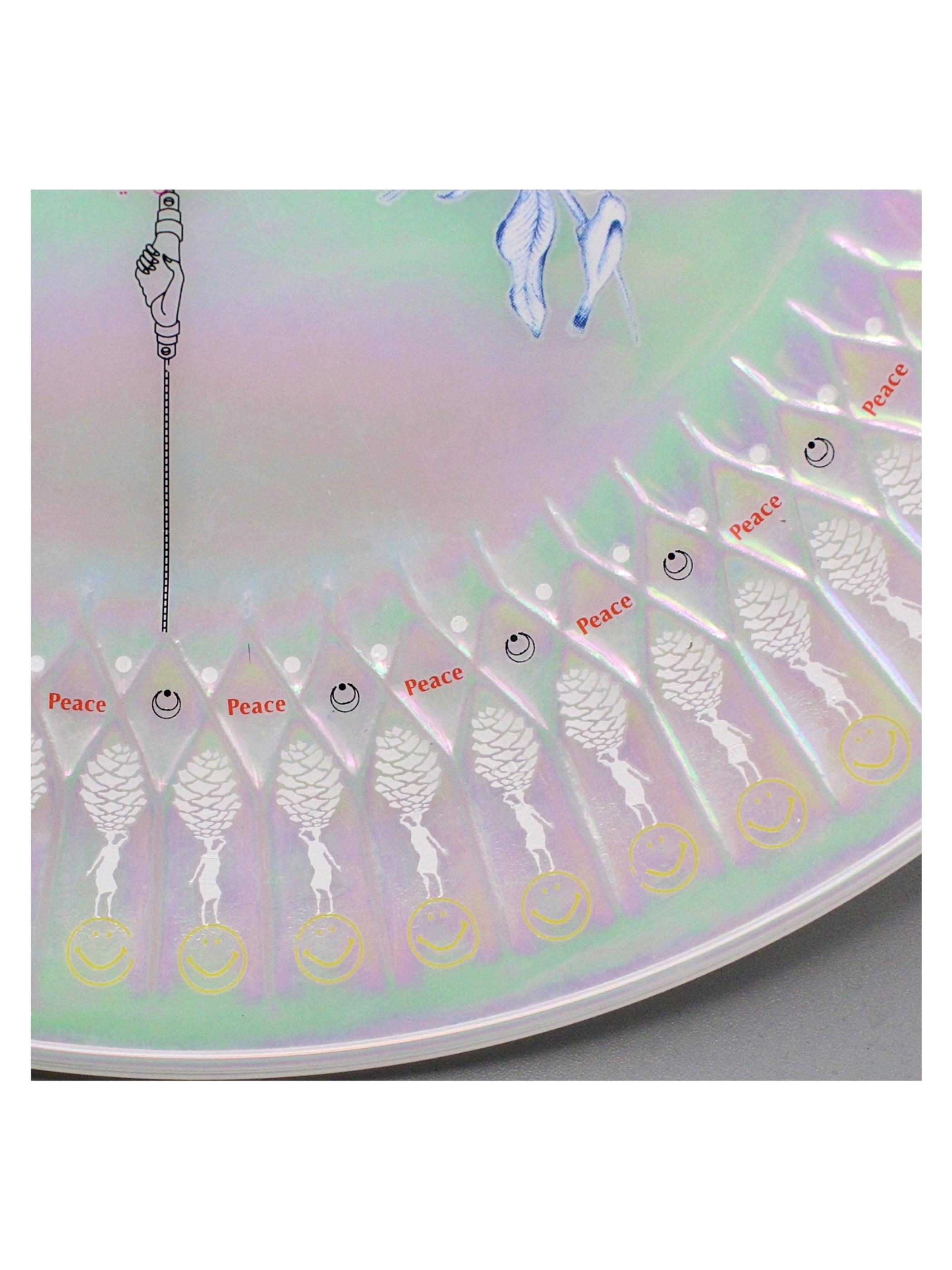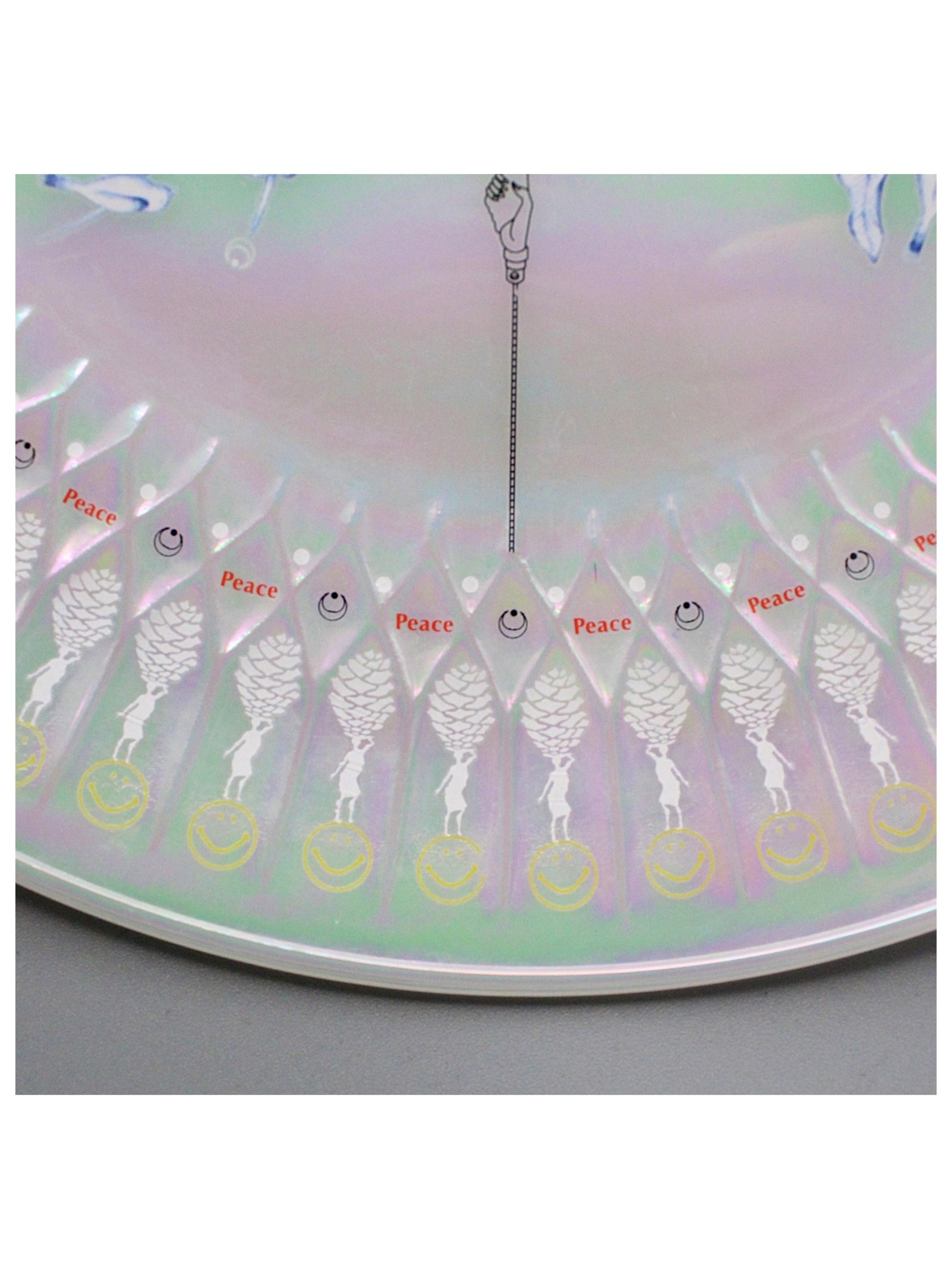 縁にはsmileと松ぼっくりを持った女性がぐるぐると踊ります。